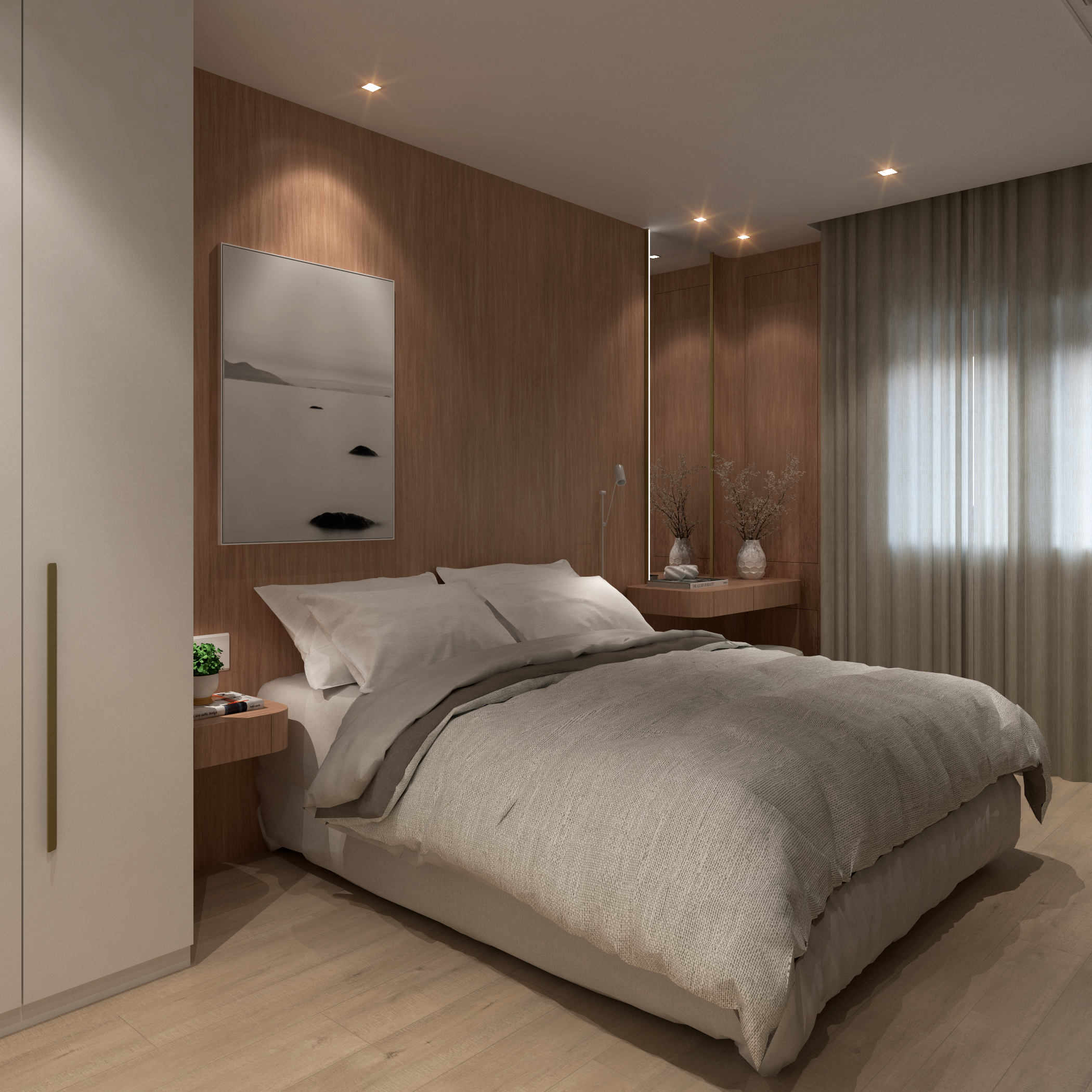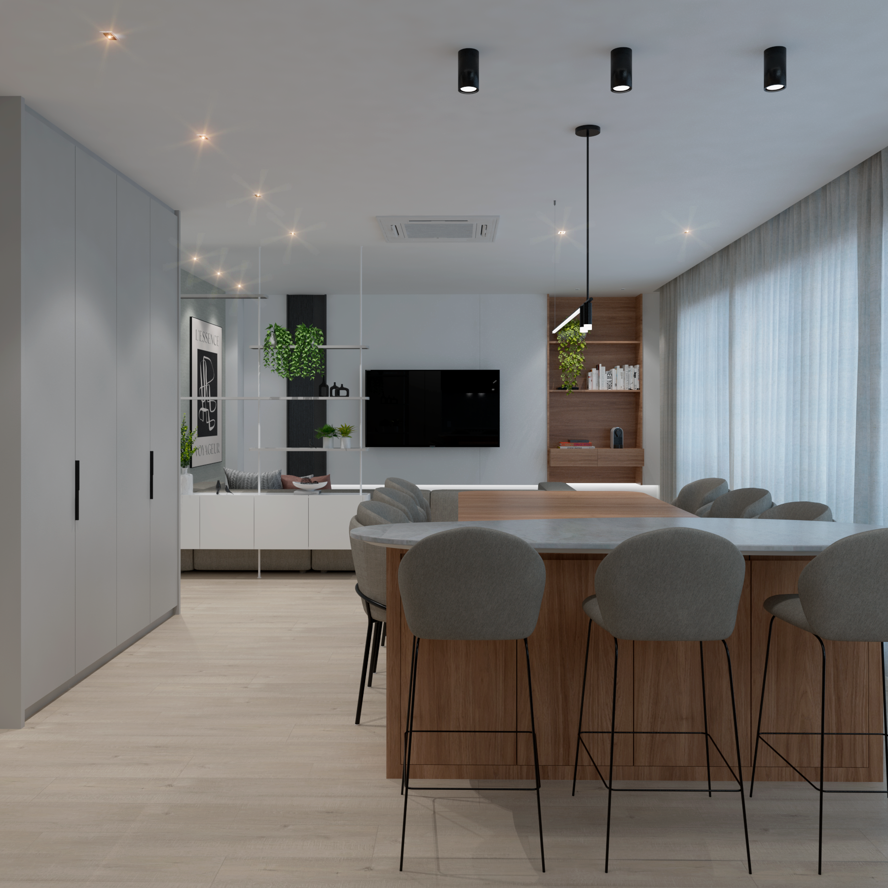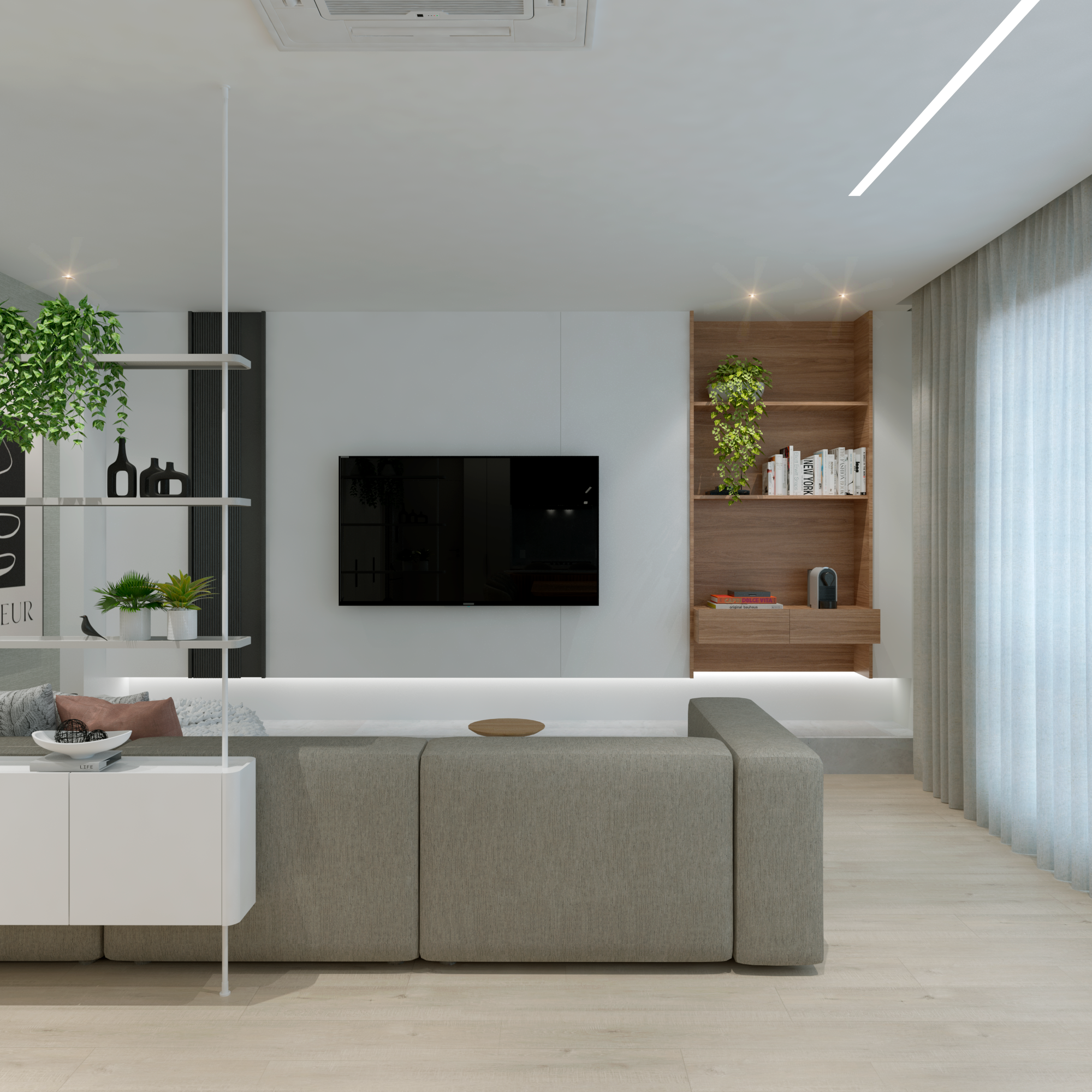 Este projeto foi pensado para um casal que trocou a amplitude do lar anterior por um novo começo — um apartamento funcional, aconchegante e sob medida para a nova fase da vida deles.