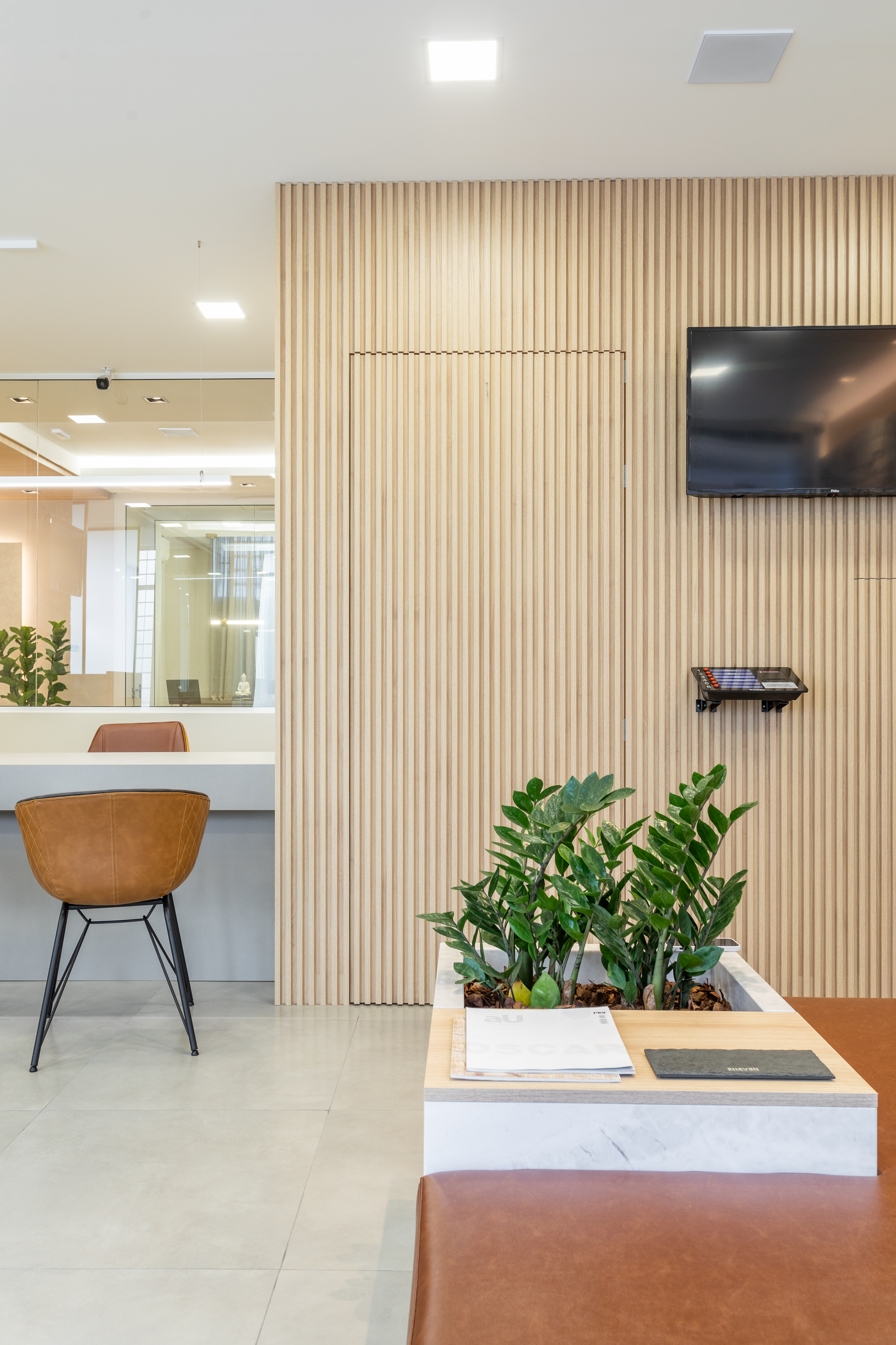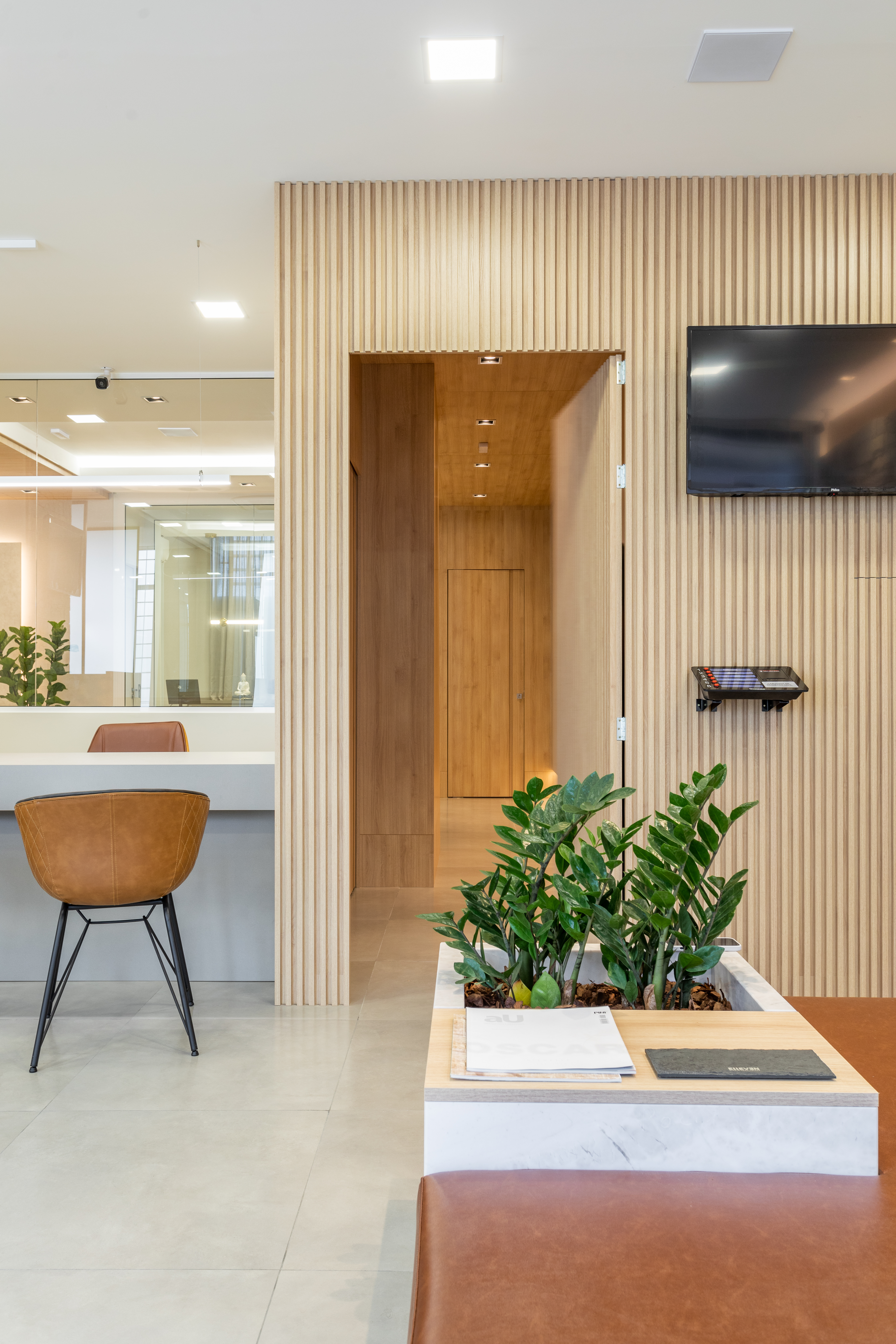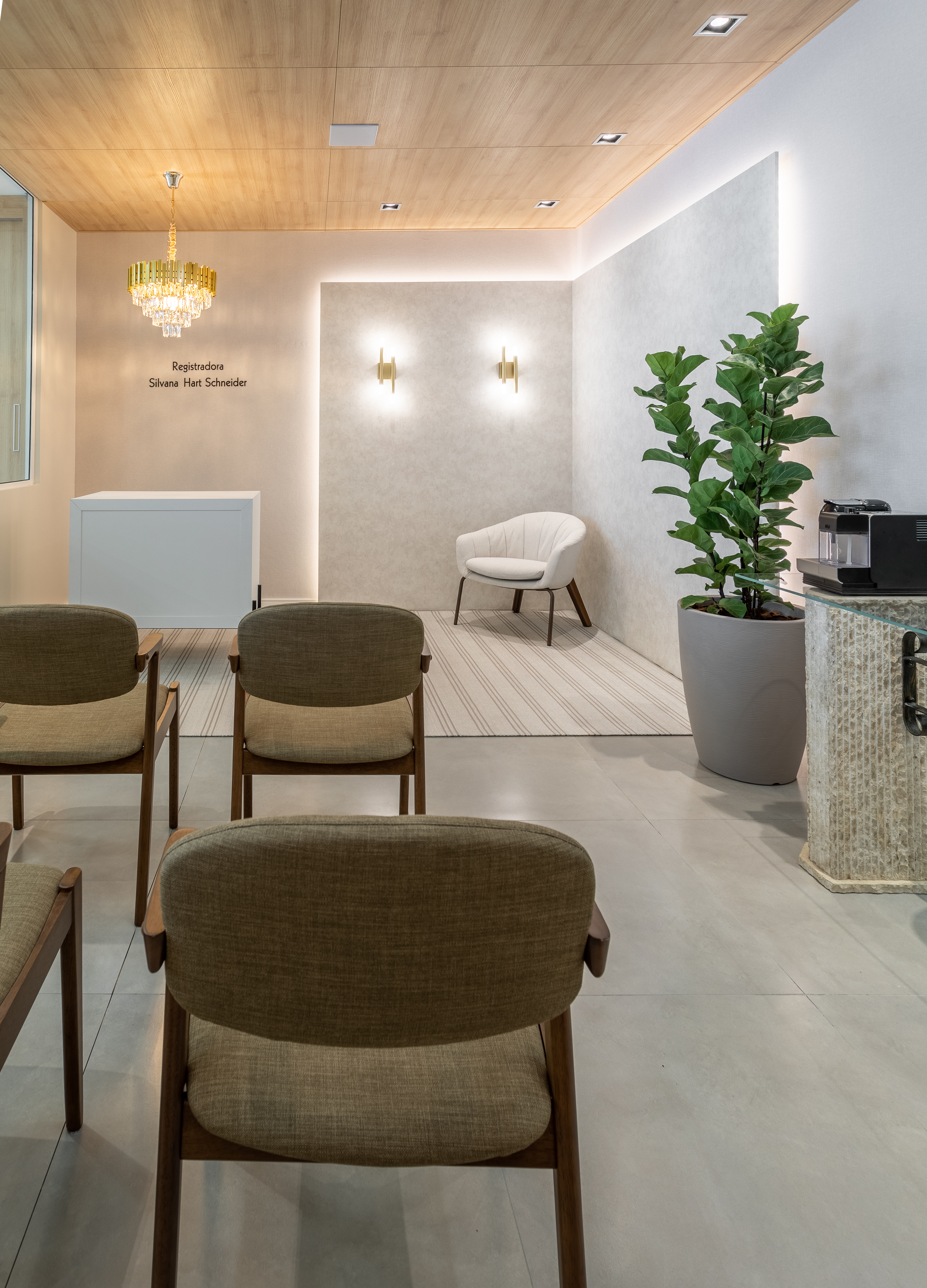 Nova sala do Cartório de Registro Civil de Farroupilha. Fugindo dos padrões tradicionais desses ambientes, trouxemos para o cartório um ambiente acolhedor. Aconchego e receptividade através da harmonia dos materiais, equilíbrio entre funcionalidade e estética.