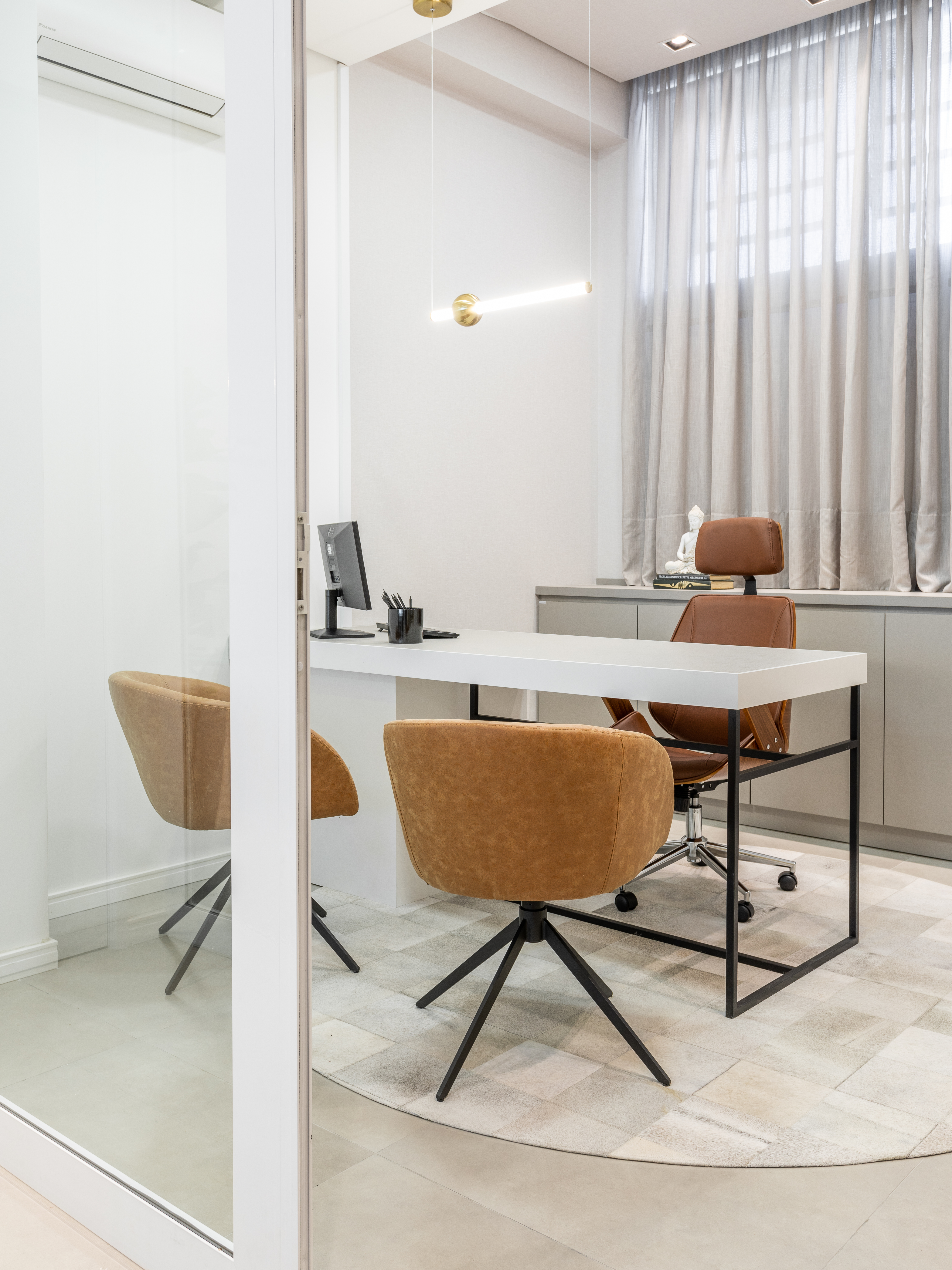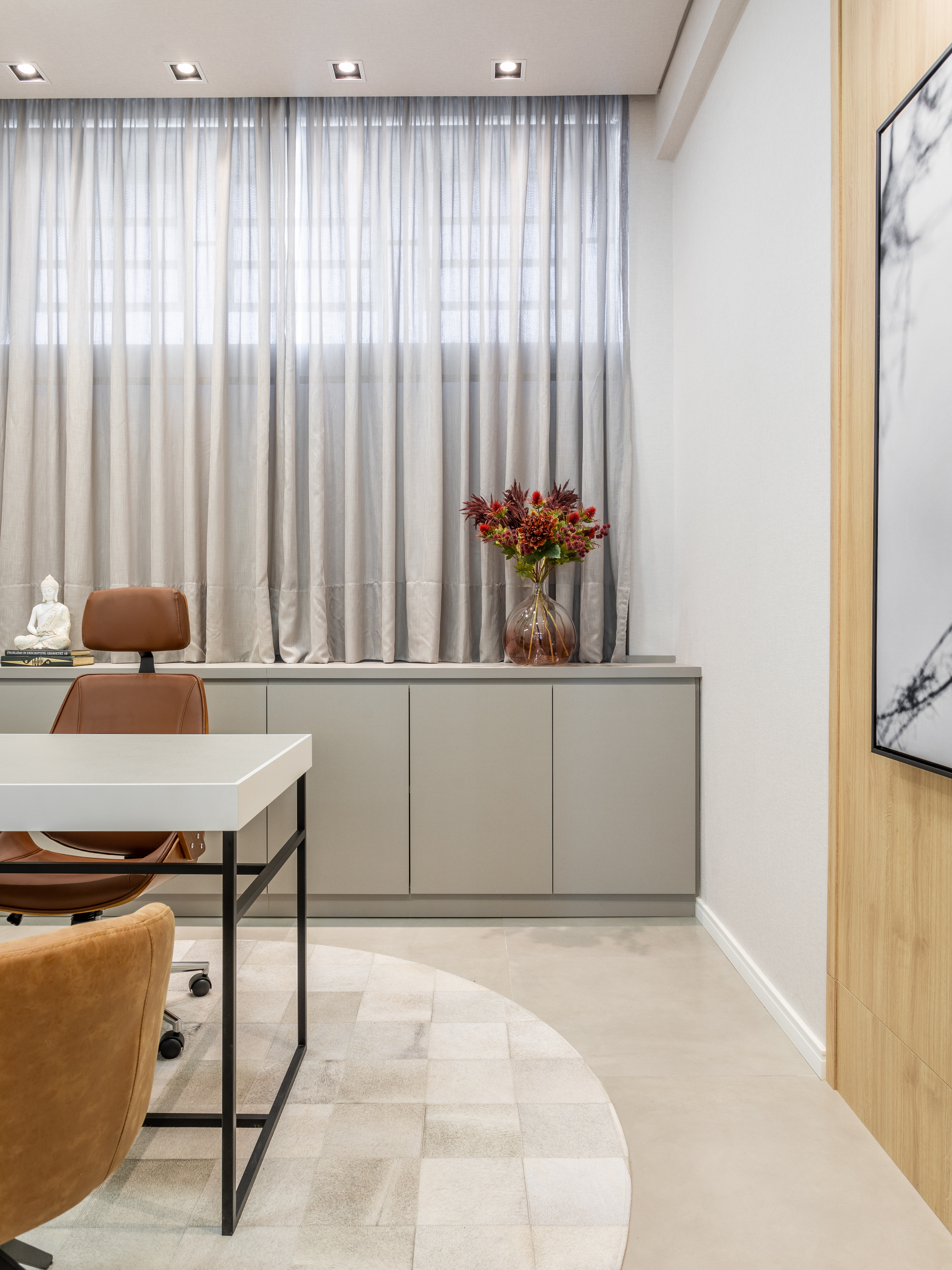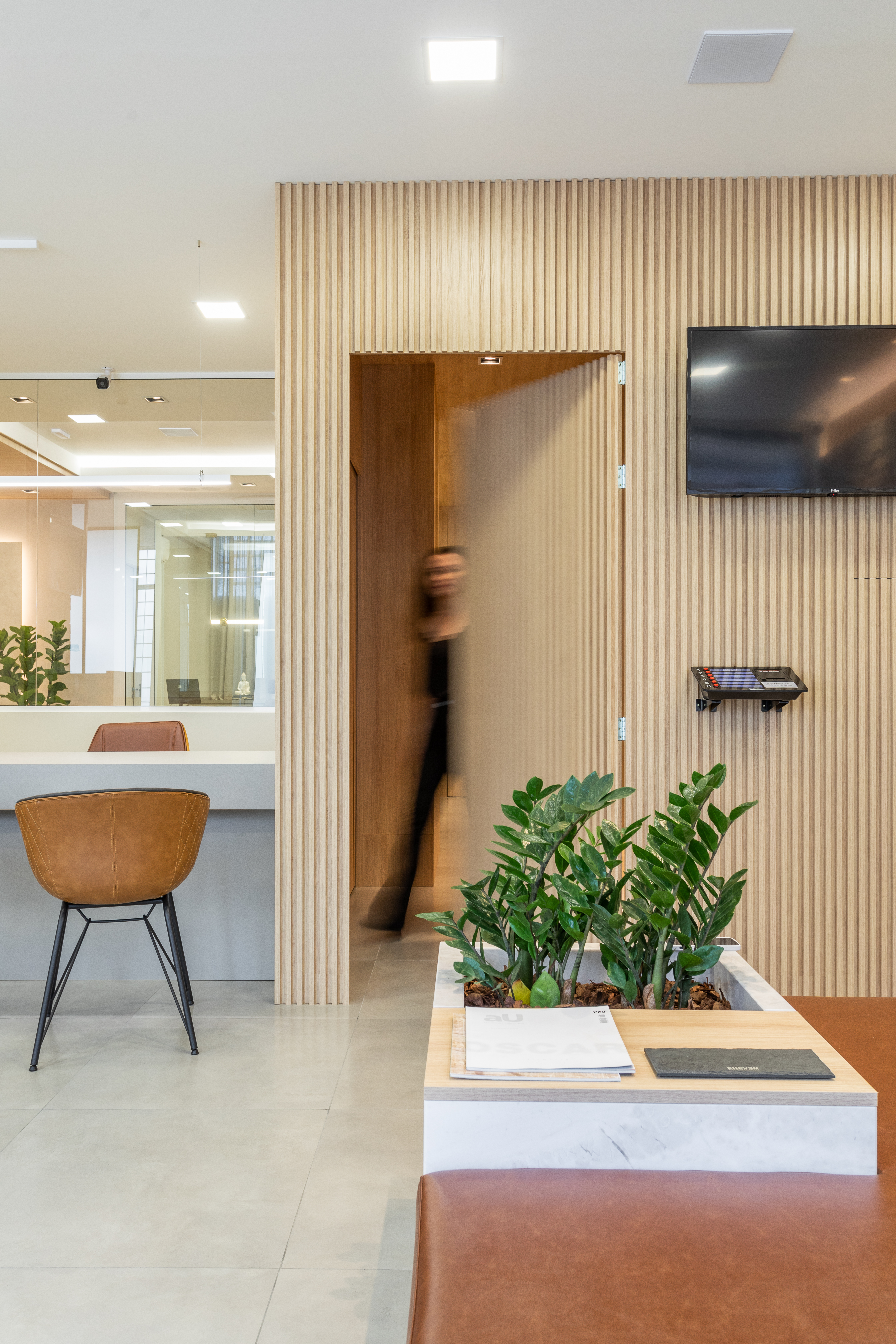 Nova sala do Cartório de Registro Civil de Farroupilha. Fugindo dos padrões tradicionais desses ambientes, trouxemos para o cartório um ambiente acolhedor. Aconchego e receptividade através da harmonia dos materiais, equilíbrio entre funcionalidade e estética.