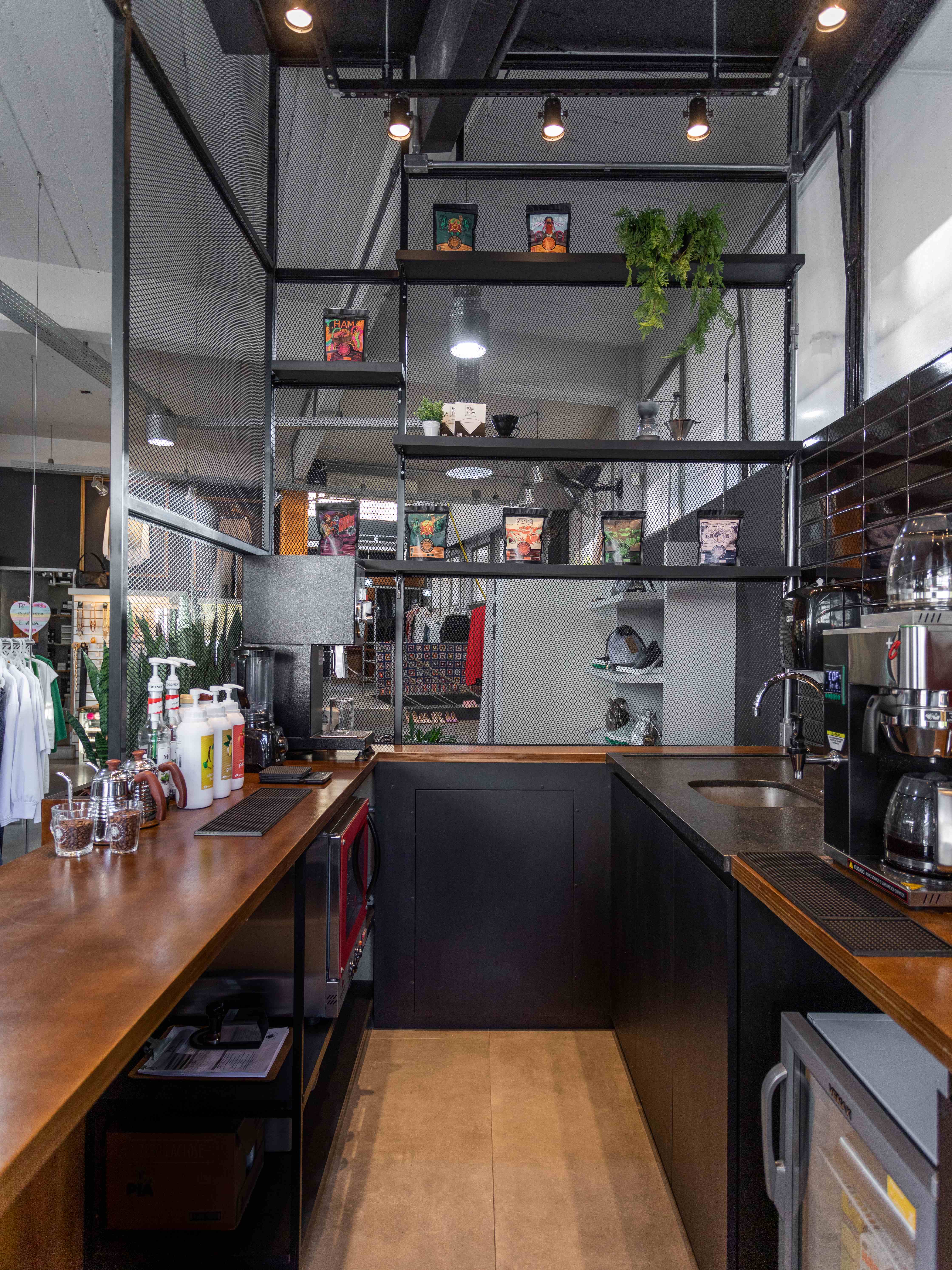 Inserida dentro de uma loja de roupas e com abertura para a rua, uma cafeteria que foge do óbvio.