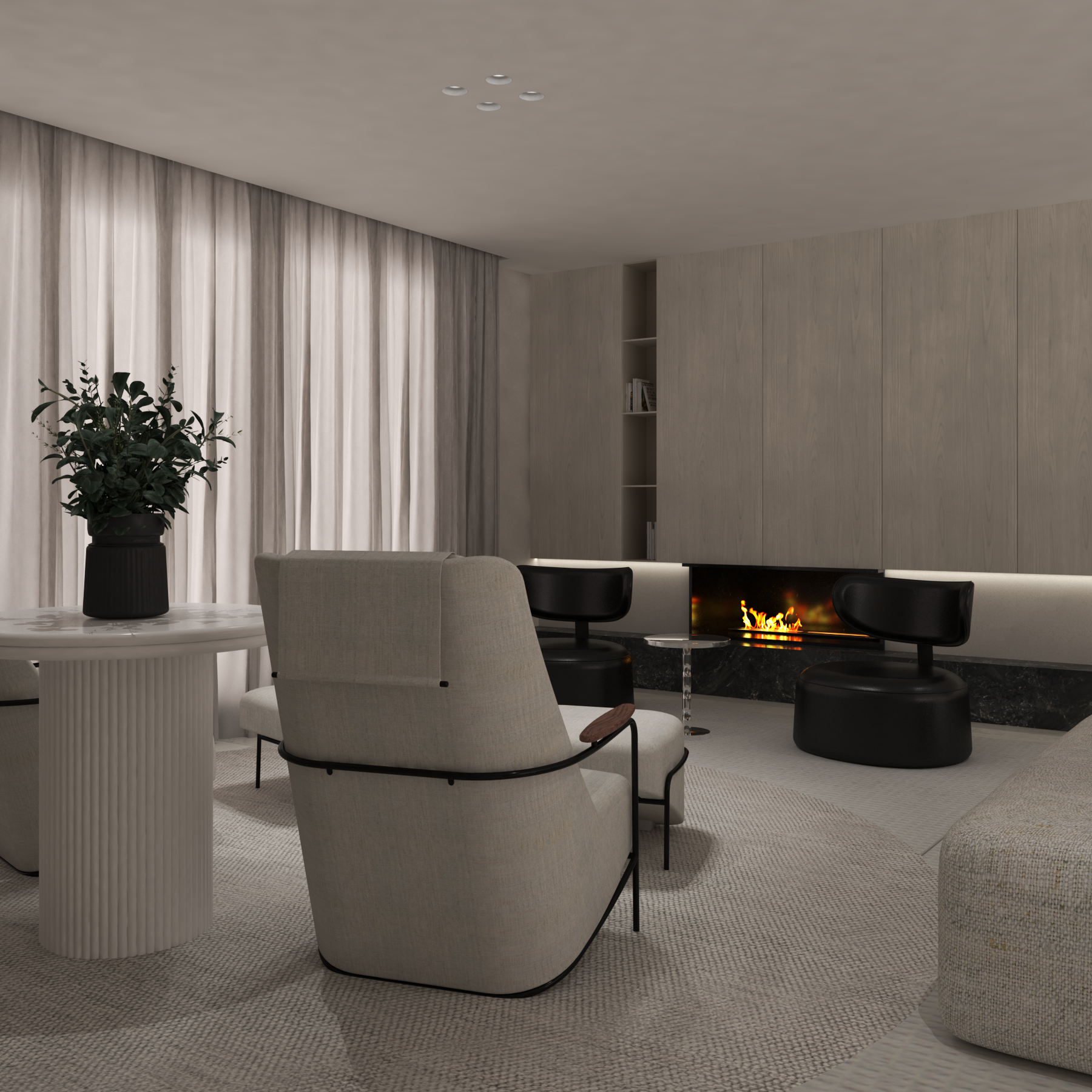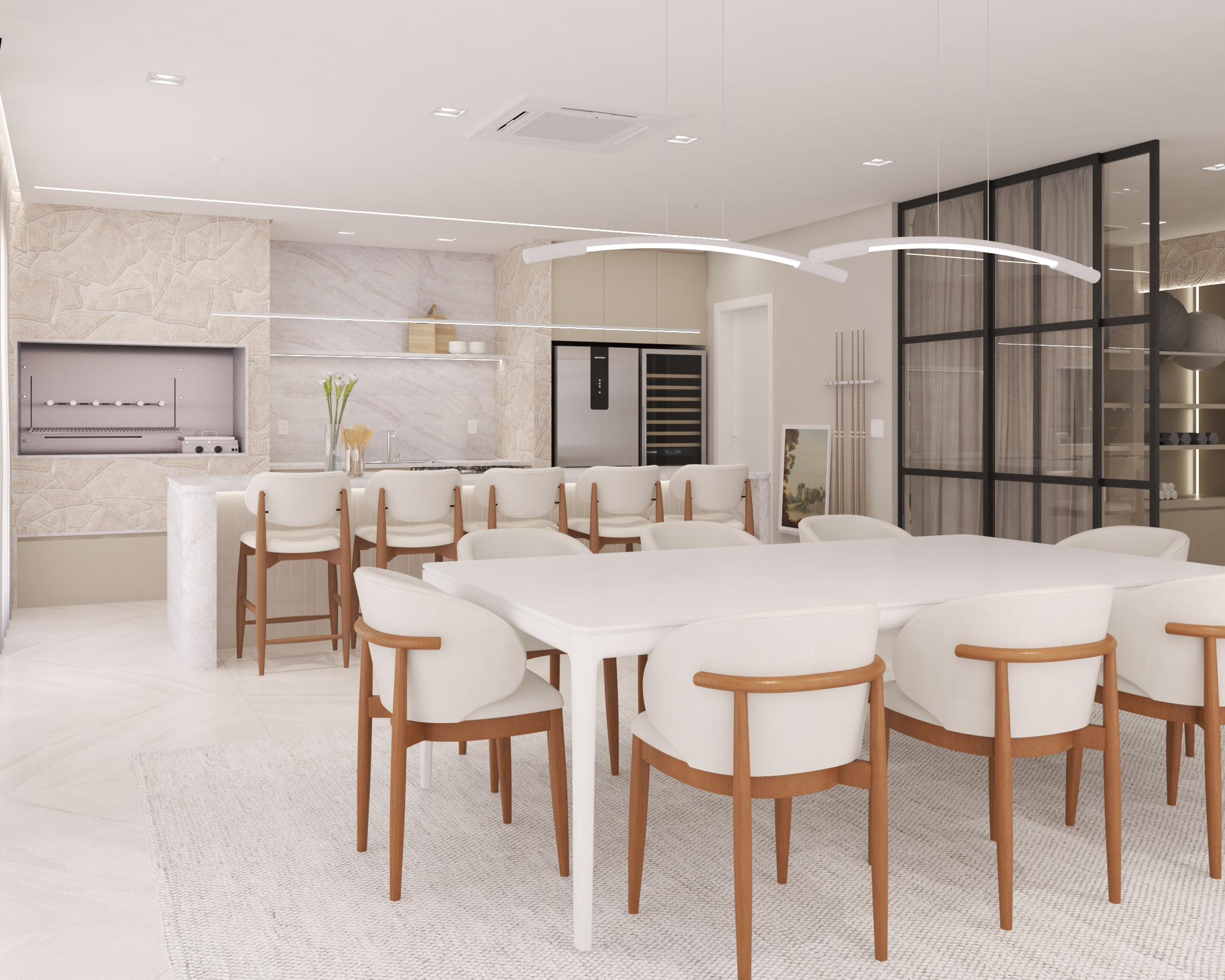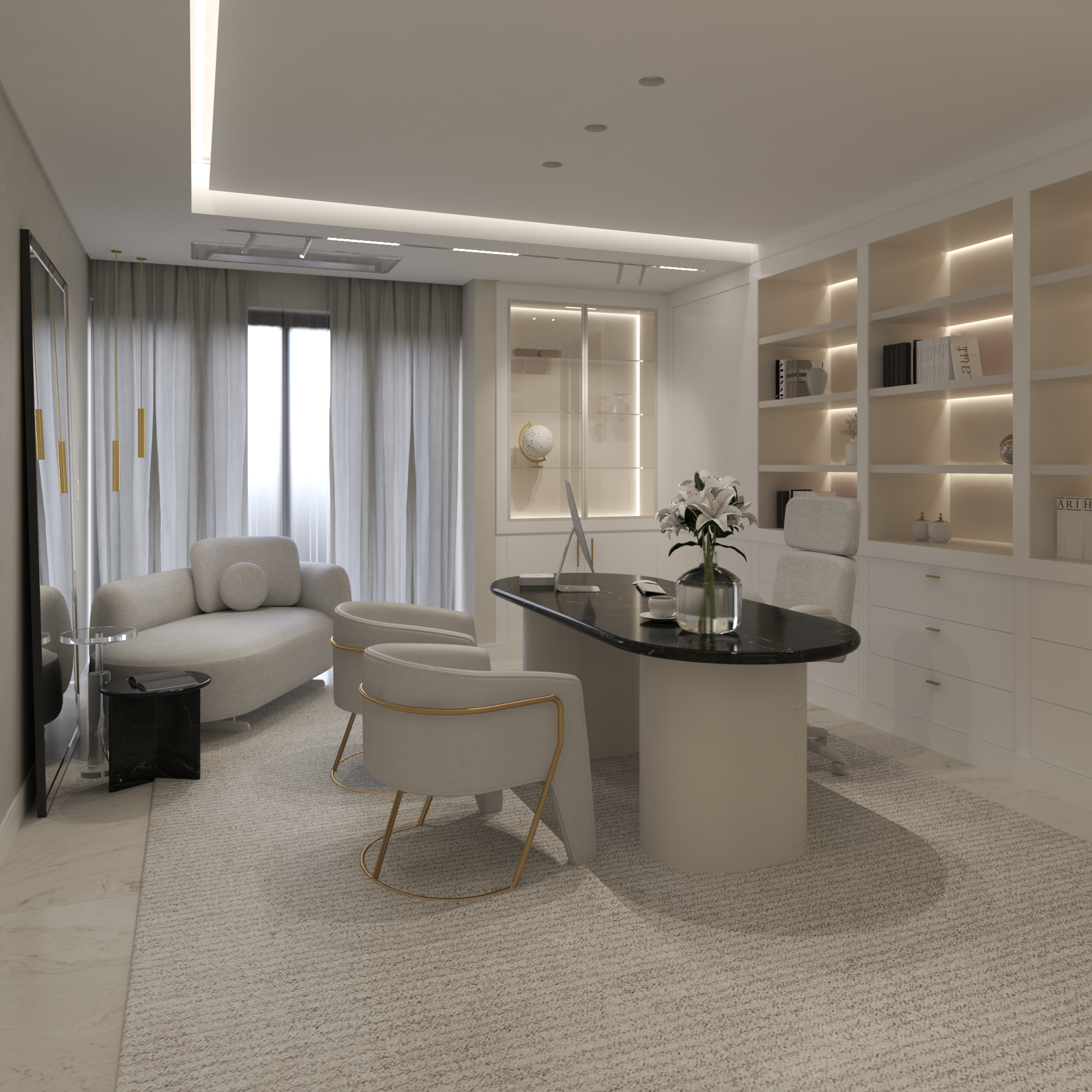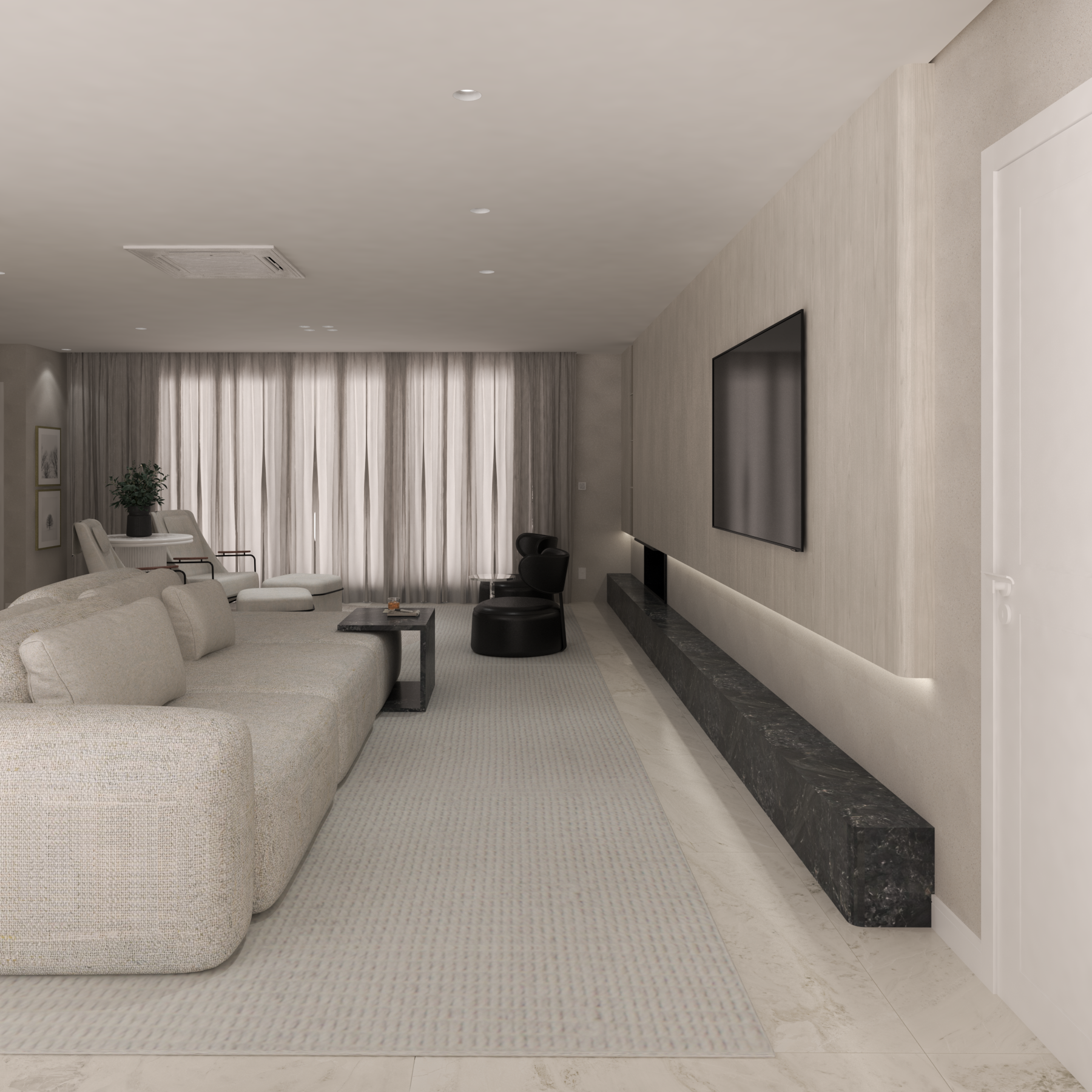 Neste projeto, transformamos uma residência de mais de 600m² em construção na casa dos sonhos do casal. Com um novo olhar arquitetônico e um projeto de interiores completo, criamos ambientes funcionais e alinhados ao estilo de vida dos moradores.