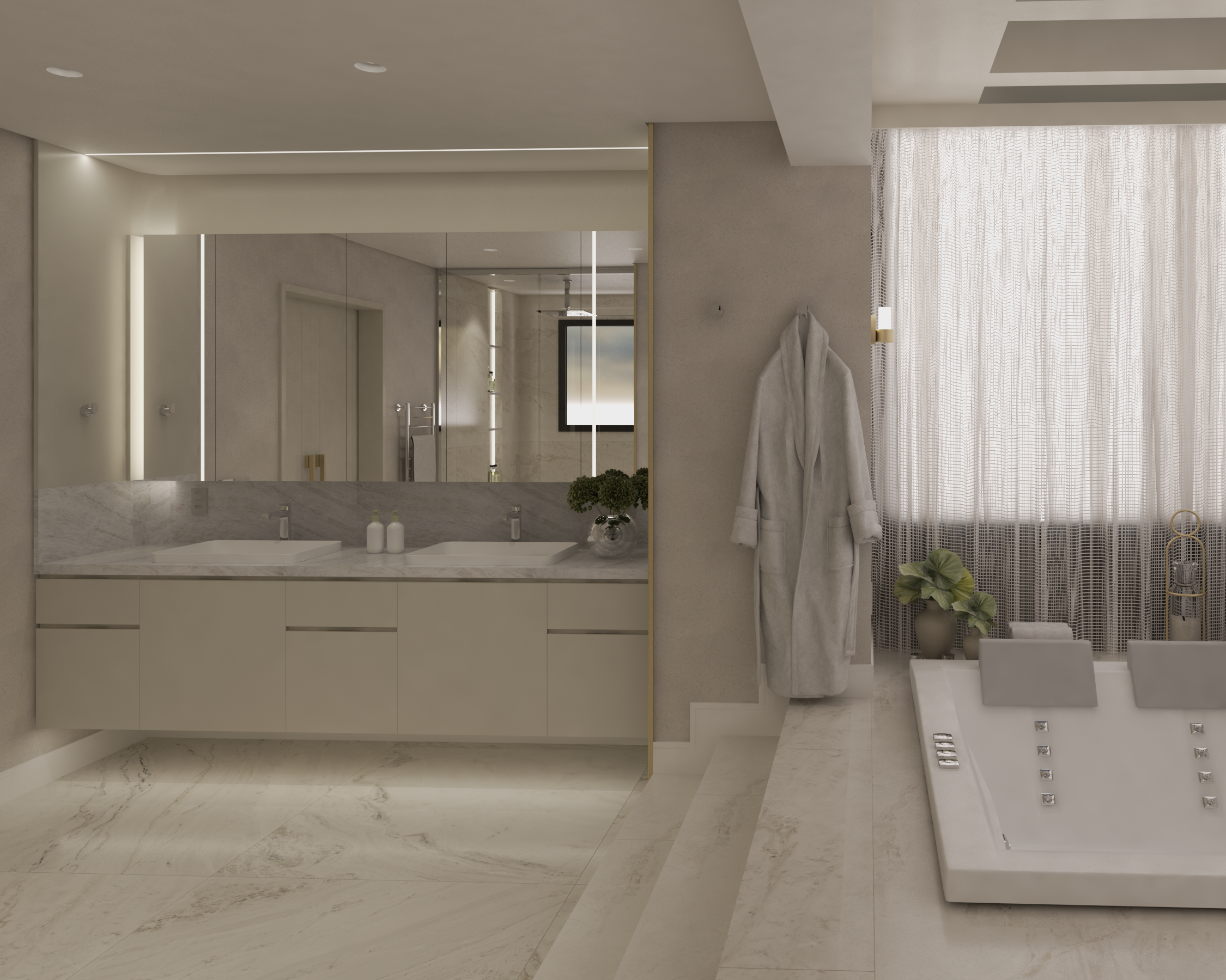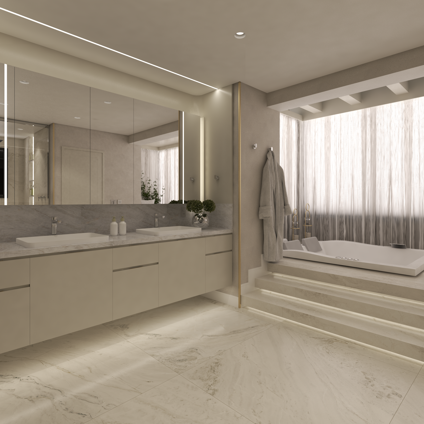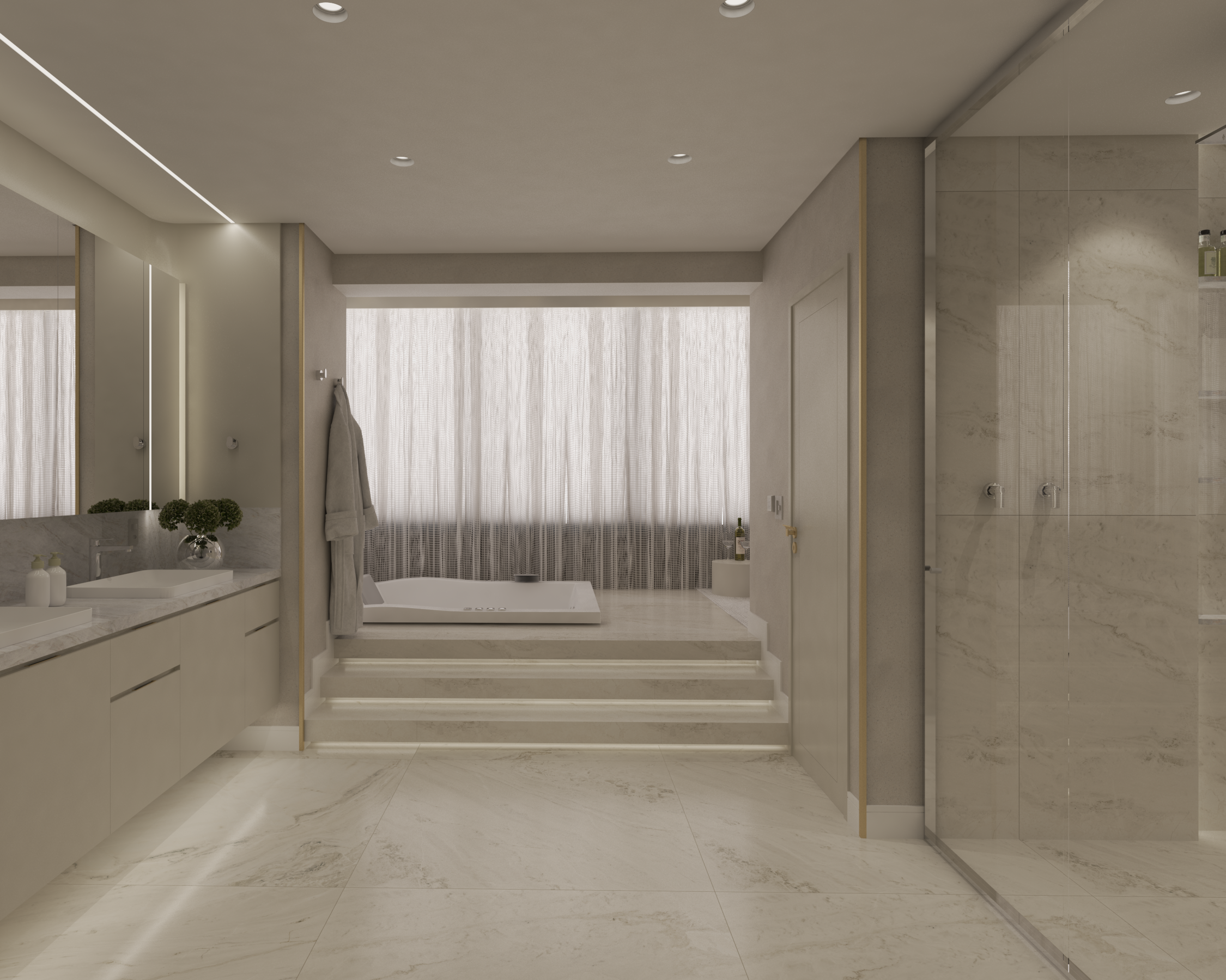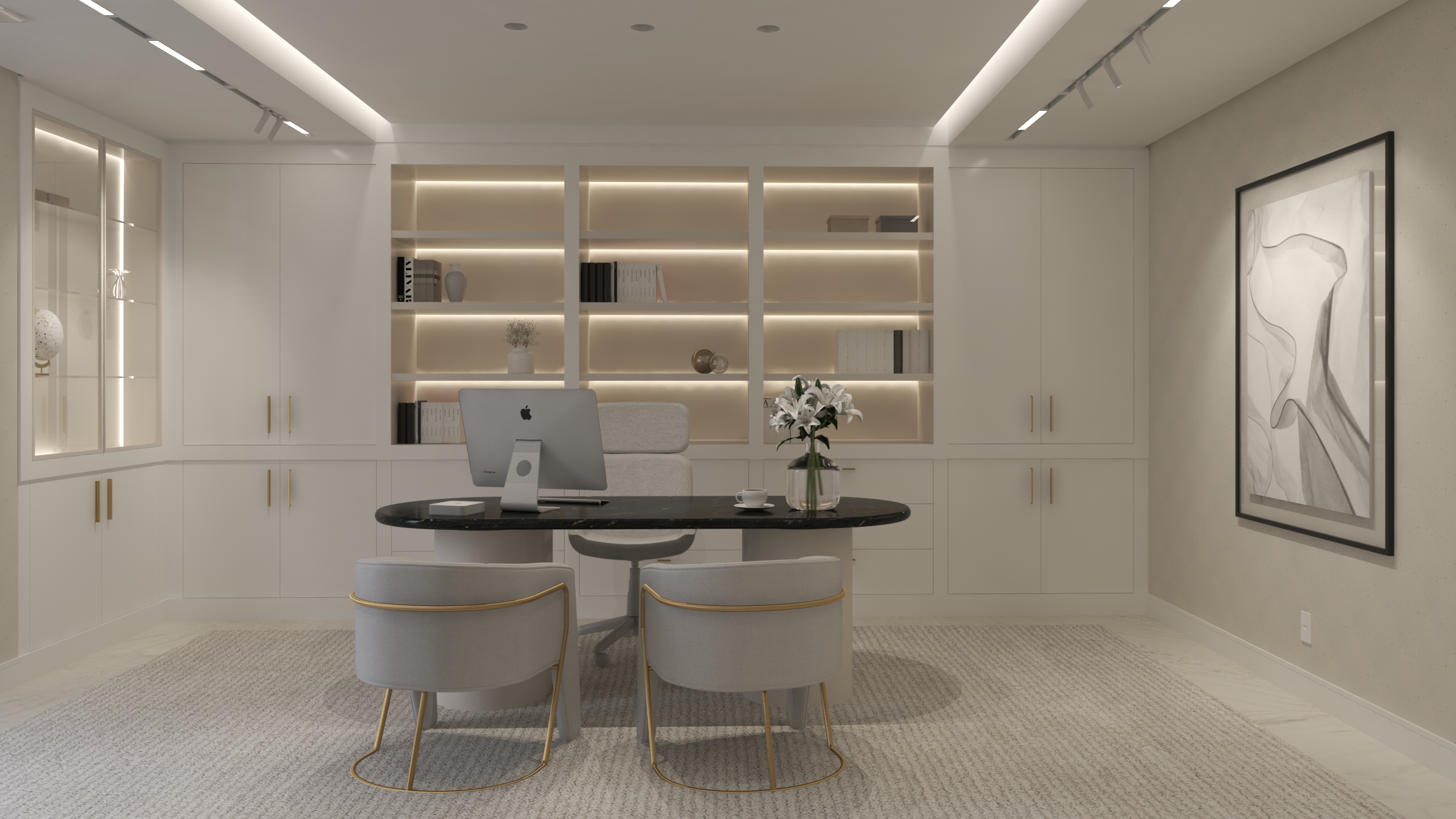 Neste projeto, transformamos uma residência de mais de 600m² em construção na casa dos sonhos do casal. Com um novo olhar arquitetônico e um projeto de interiores completo, criamos ambientes funcionais e alinhados ao estilo de vida dos moradores.