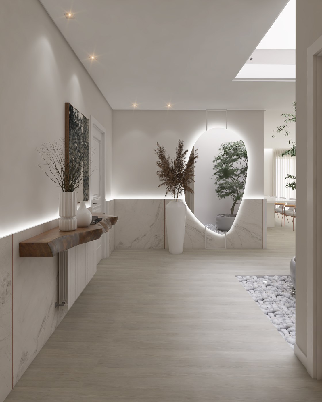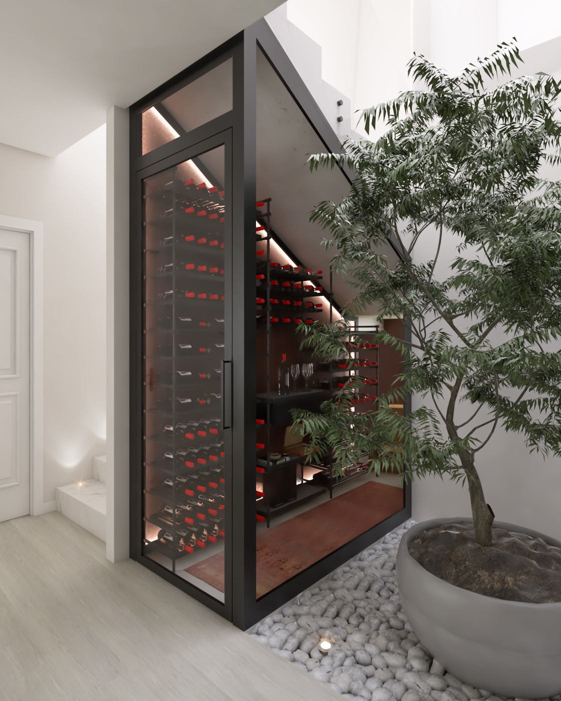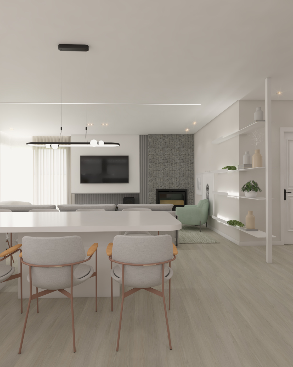 Definida por linhas precisas e pela privacidade em relação à rua. O térreo, que abriga os ambientes sociais, está totalmente integrado ao jardim. Um lar com alma, criado unicamente para as pessoas que habitarão o espaço.