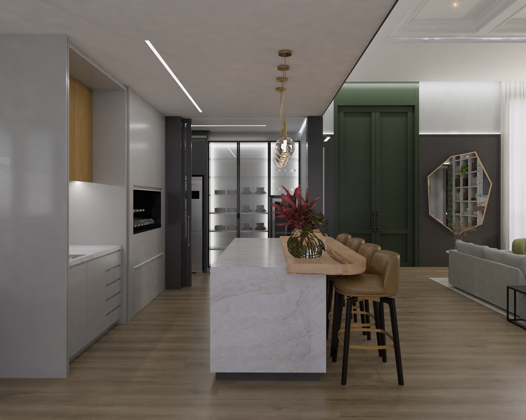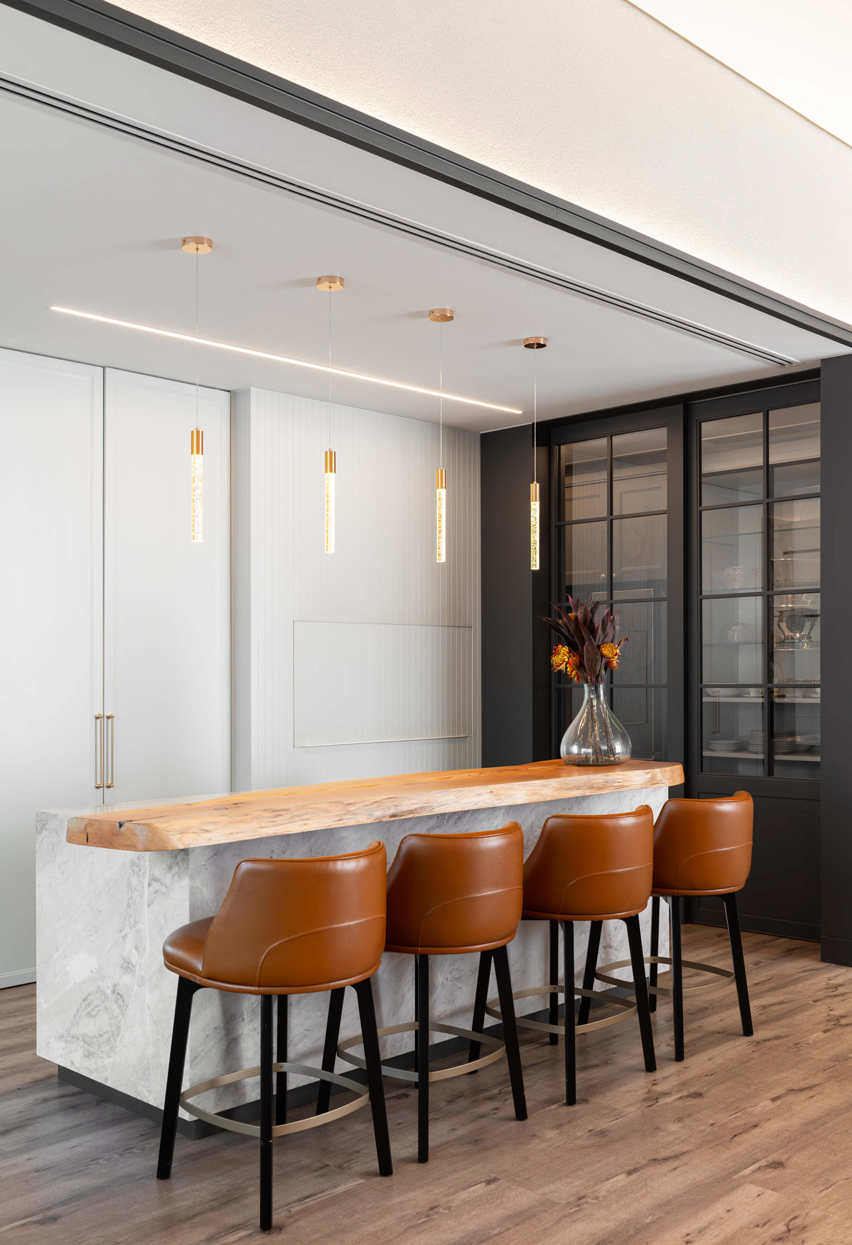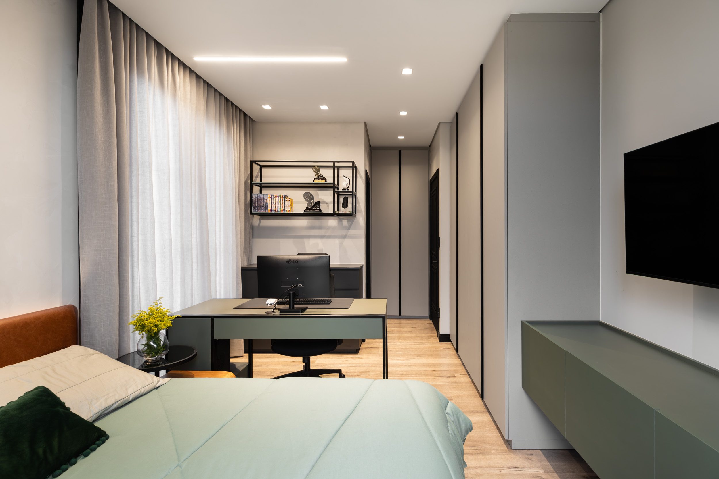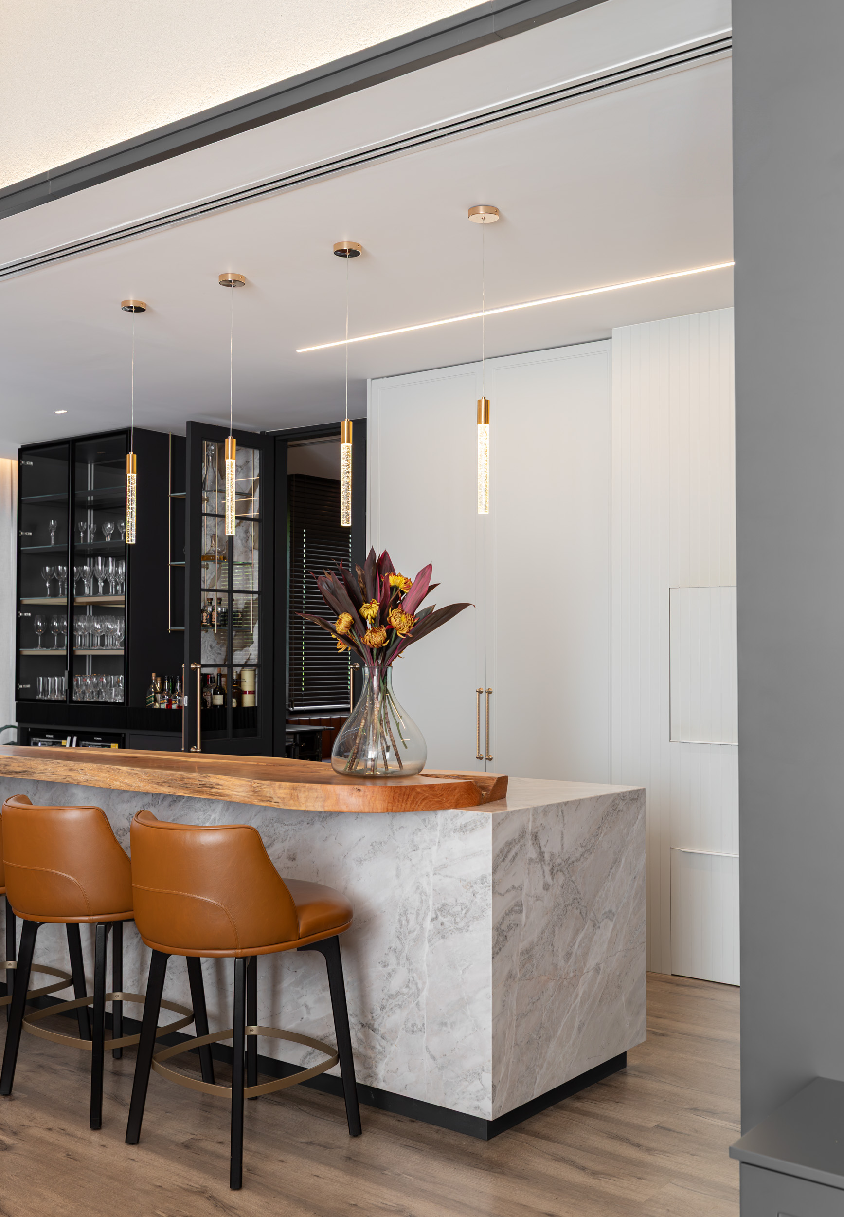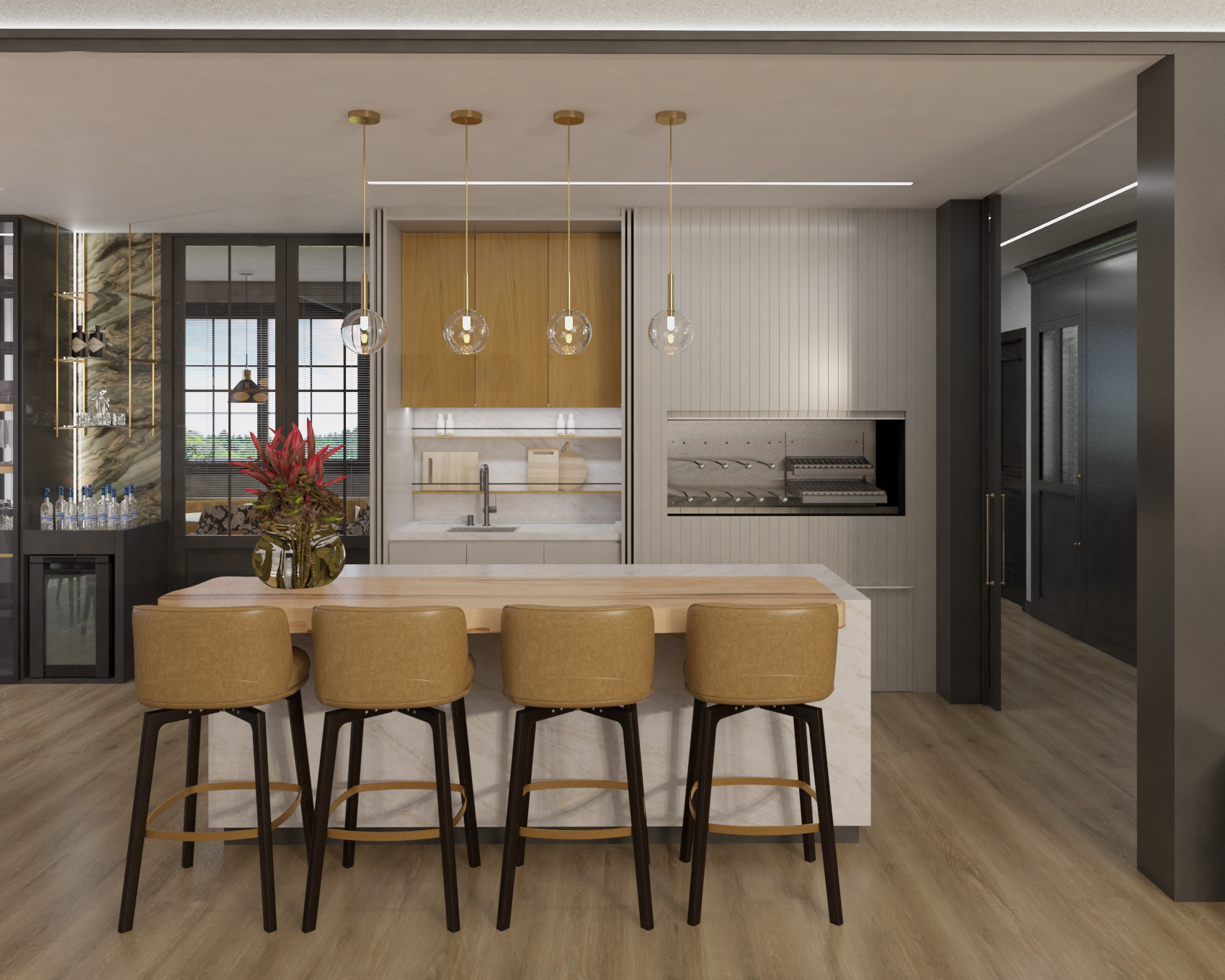 Localizada em um terreno com desnível, os amplos espaços dessa residência foram planejados para proporcionar conforto e privacidade a cada membro da família, ao mesmo tempo em que incentivam o convívio e o compartilhamento de momentos especiais.